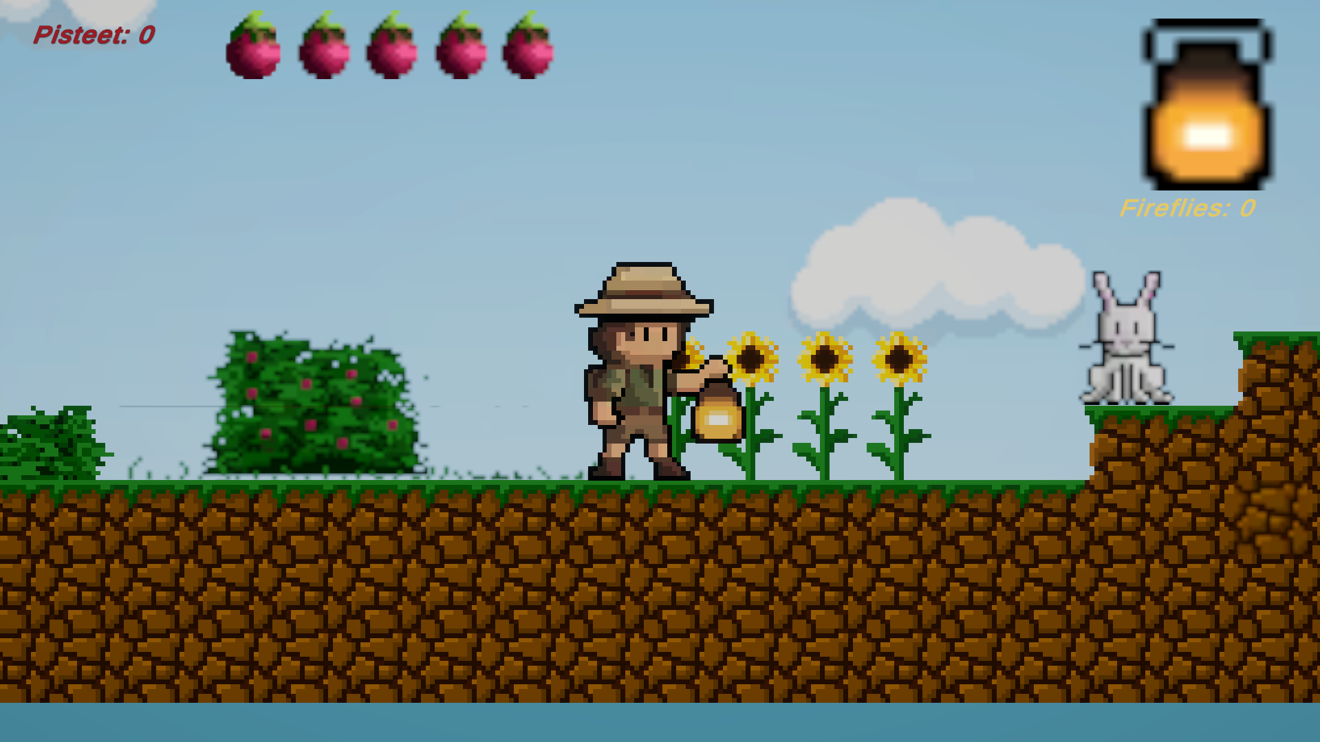 Fire Flies is a 2D puzzle platformer where you try to navigate the divide between two sides of the world. Armed with a firefly shooting lantern, you need to survive against treacherous terrain, murderous bunnies and your ever diminishing pool of insectoid ammunition.